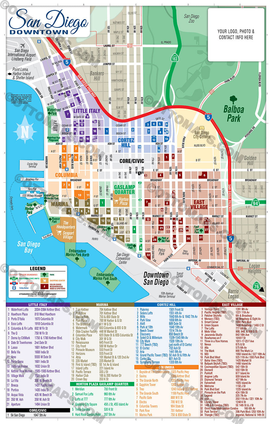 Map of Downtown San Diego Communities | San diego map, Downtown